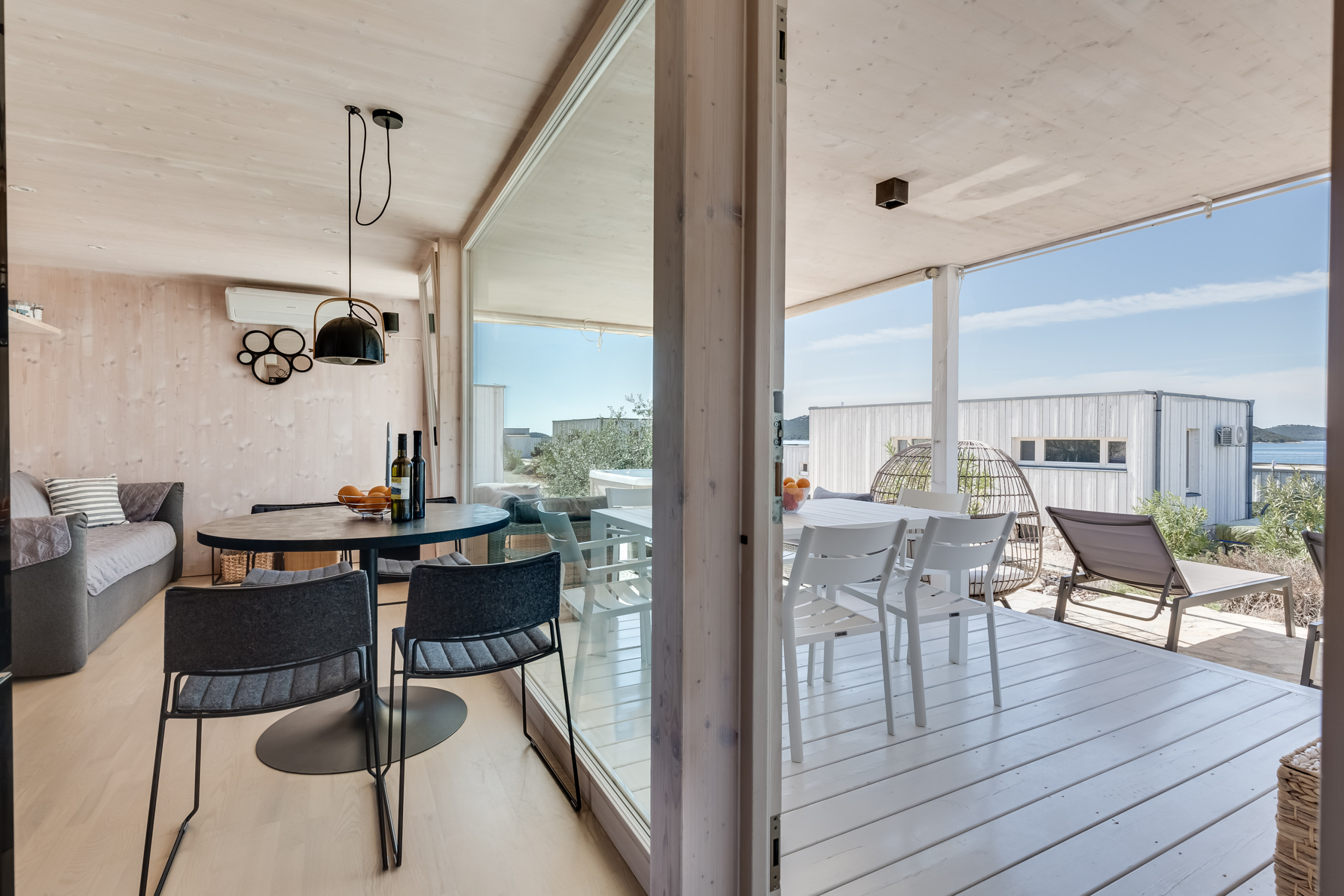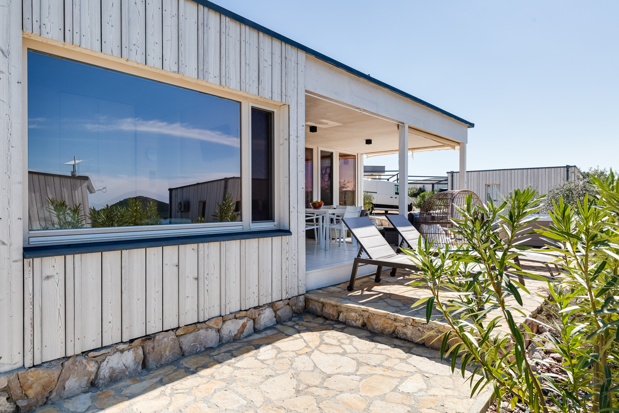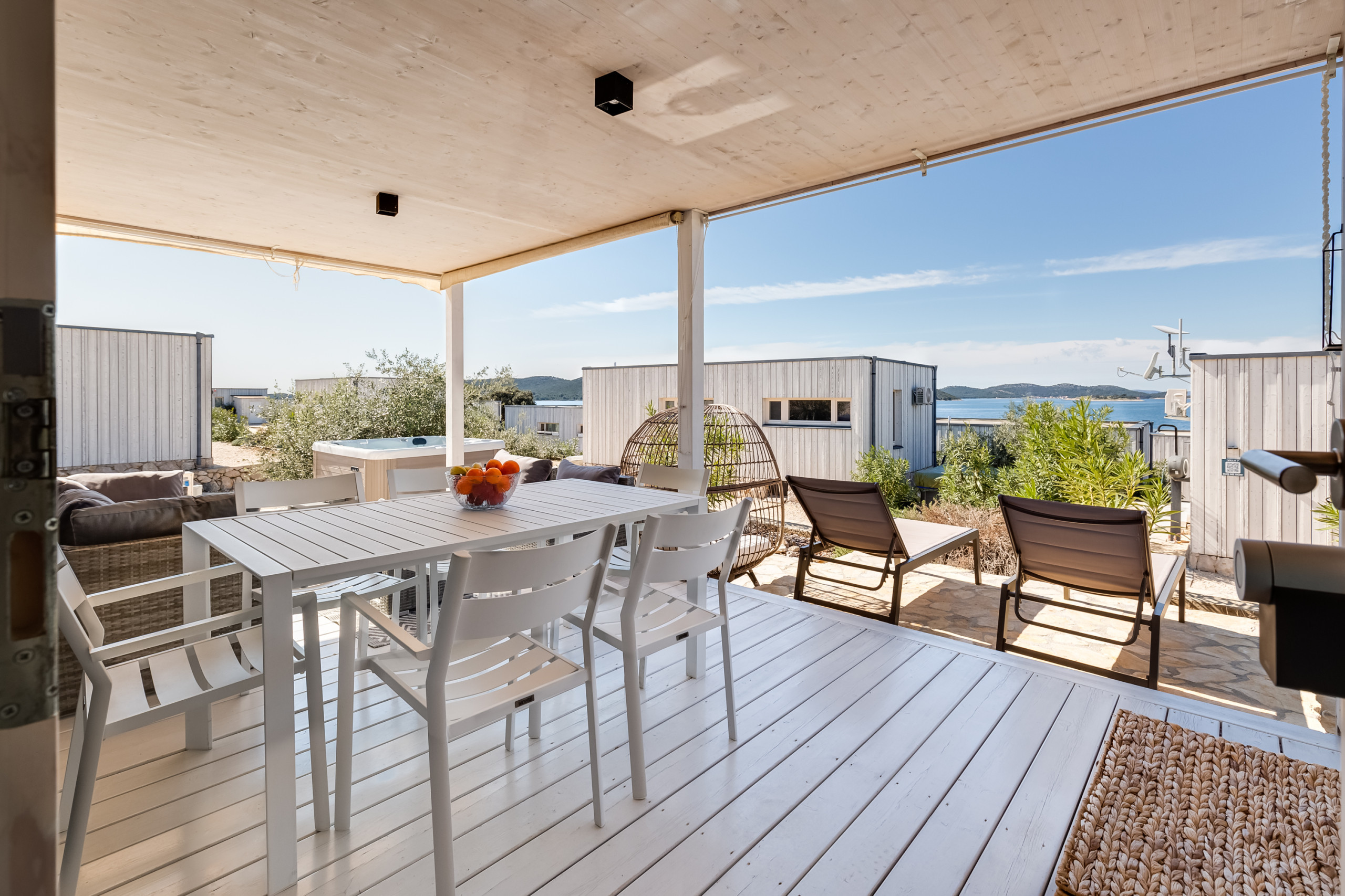 The outdoor area invites you to relax: A private, heated jacuzzi (1.5m x 1.5m), a terrace, a garden and a barbecue area offer numerous opportunities for shared moments. From here, you can enjoy dreamlike views of the sea, the jacuzzi and the garden.